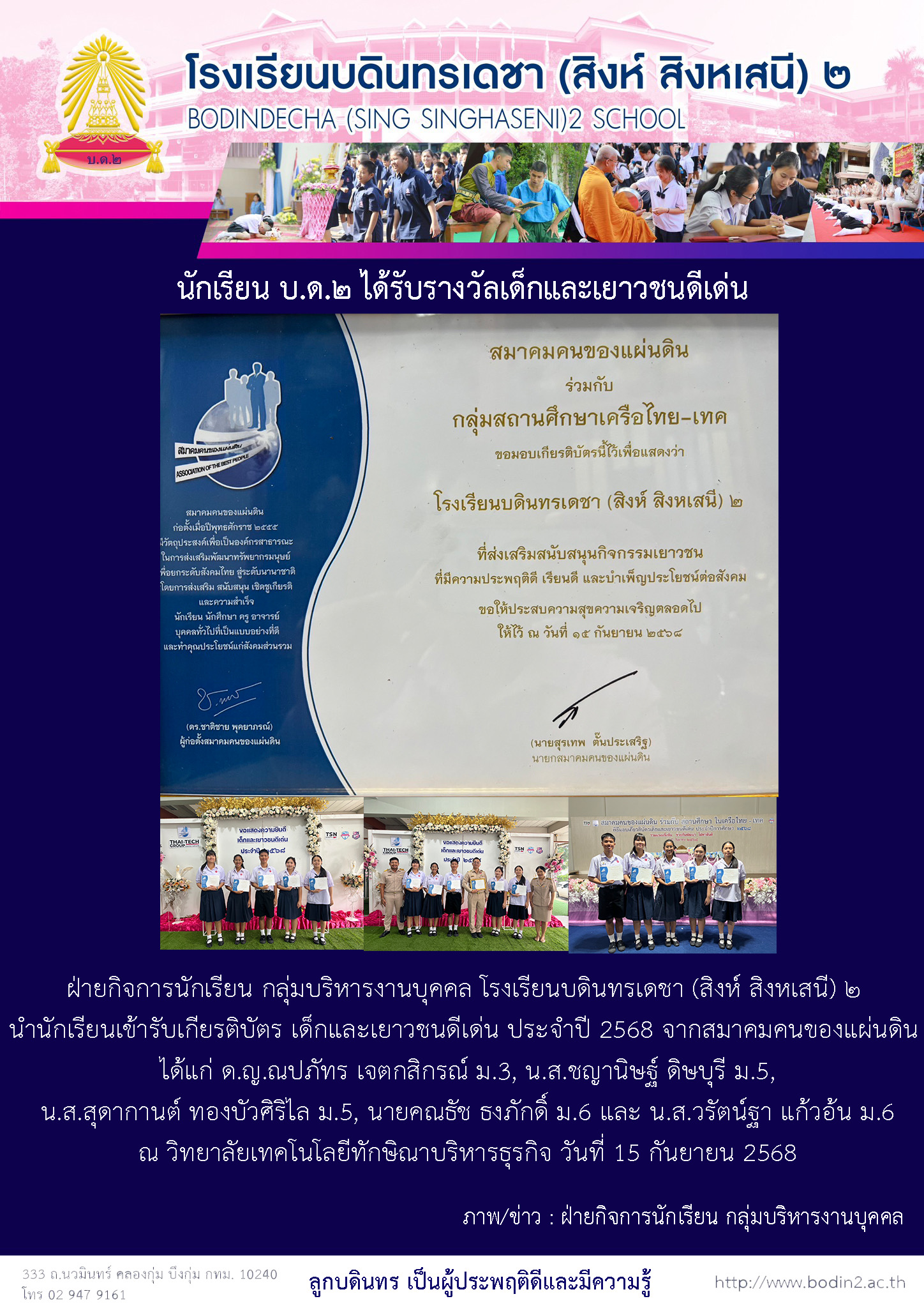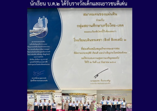 นักเรียน บ.ด.๒ ได้รับรางวัลเด็กและเยาวชนดีเด่น