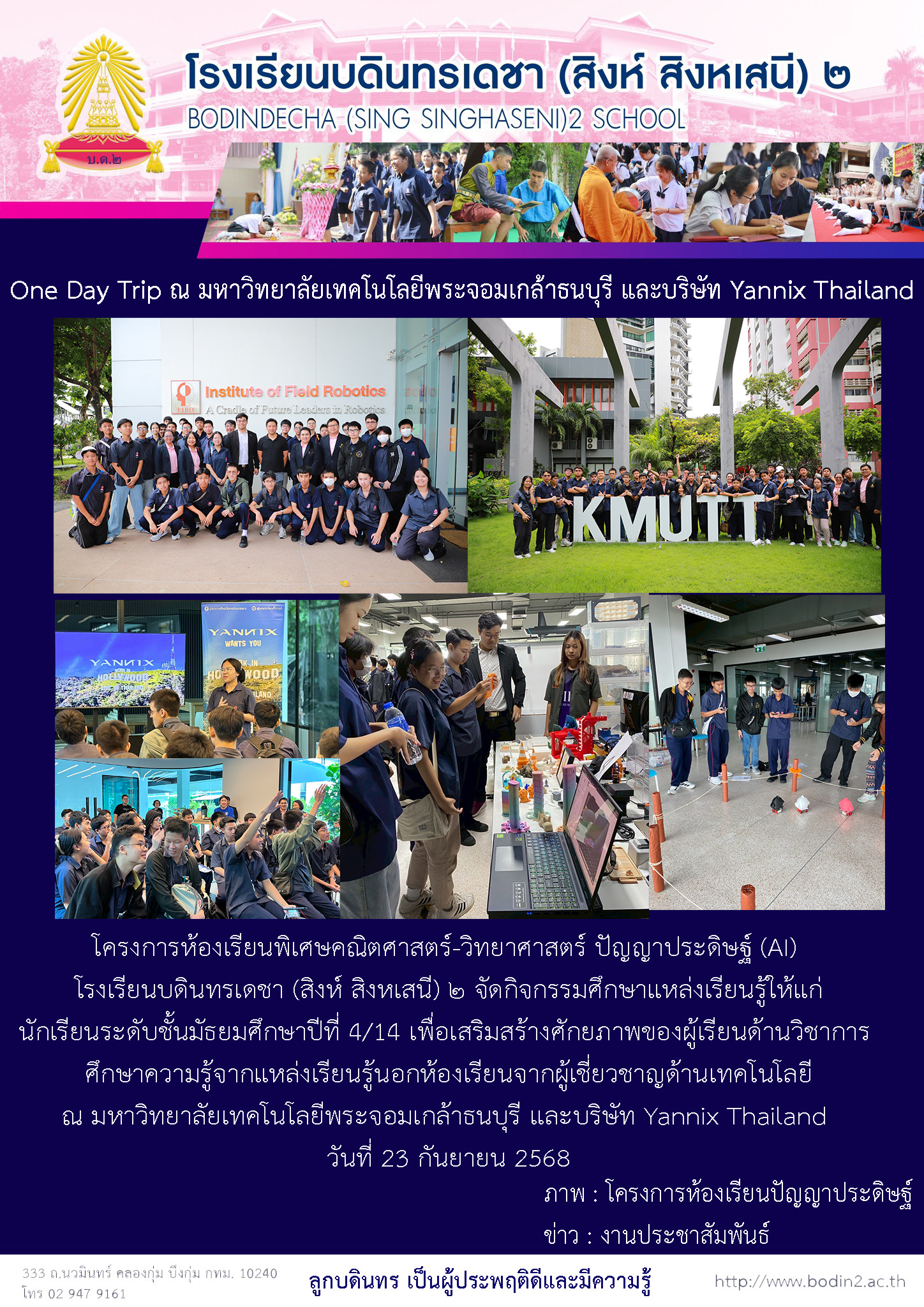 กิจกรรม/ข่าวสาร One Day Trip ณ มหาวิทยาลัยเทคโนโลยีพระจอมเกล้าธนบุรี และบริษัท Yannix Thailand 29 September 2025 admin Jerry