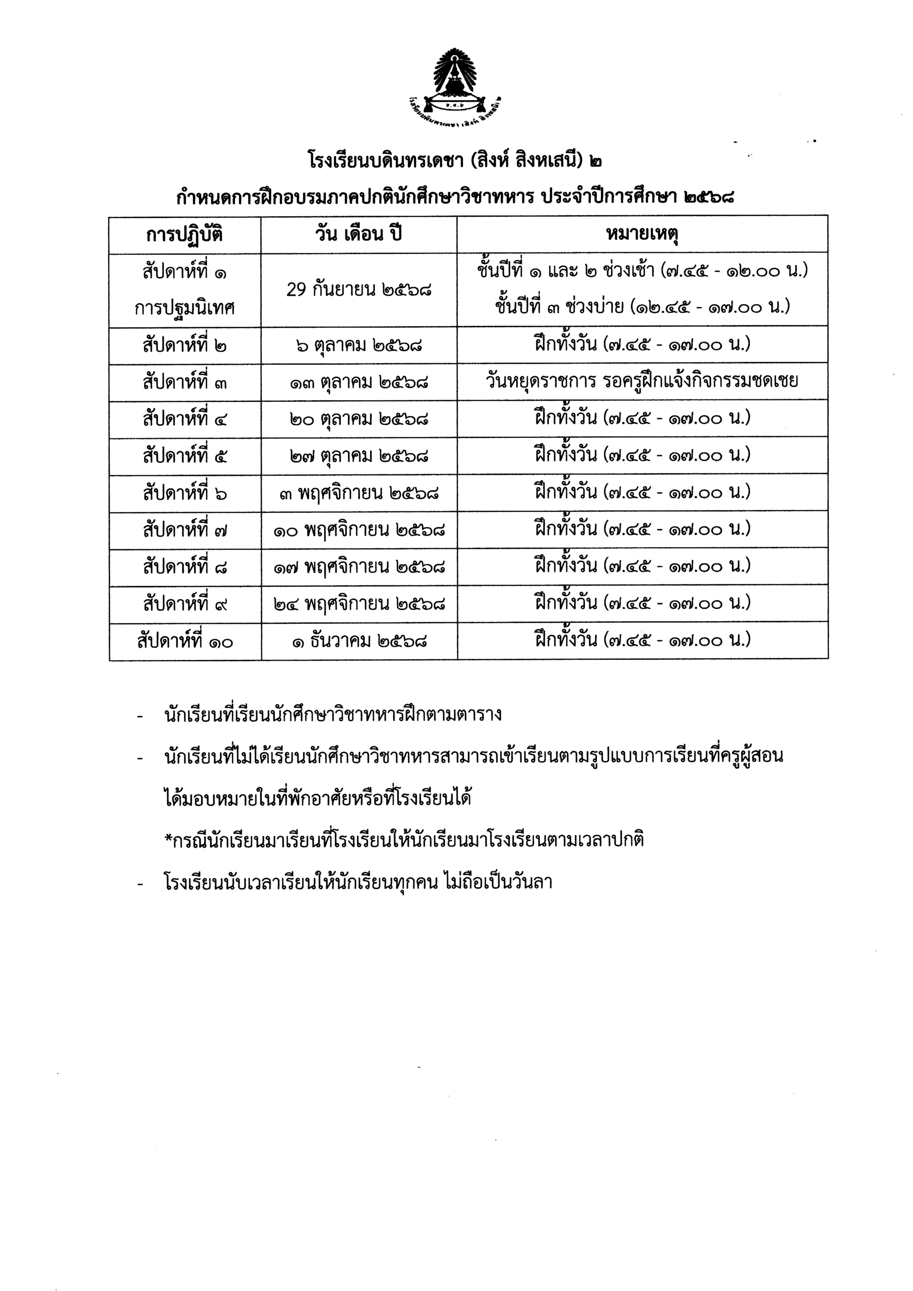 ข่าวประชาสัมพันธ์ แจ้งการปรับรูปแบบการจัดการเรียนการสอนของนักเรียนระดับชั้นมัธยมศึกษาปีที่ 4-6 เพื่อการฝึกนักศึกษาวิชาทหาร 31 October 2025 admin Jerry