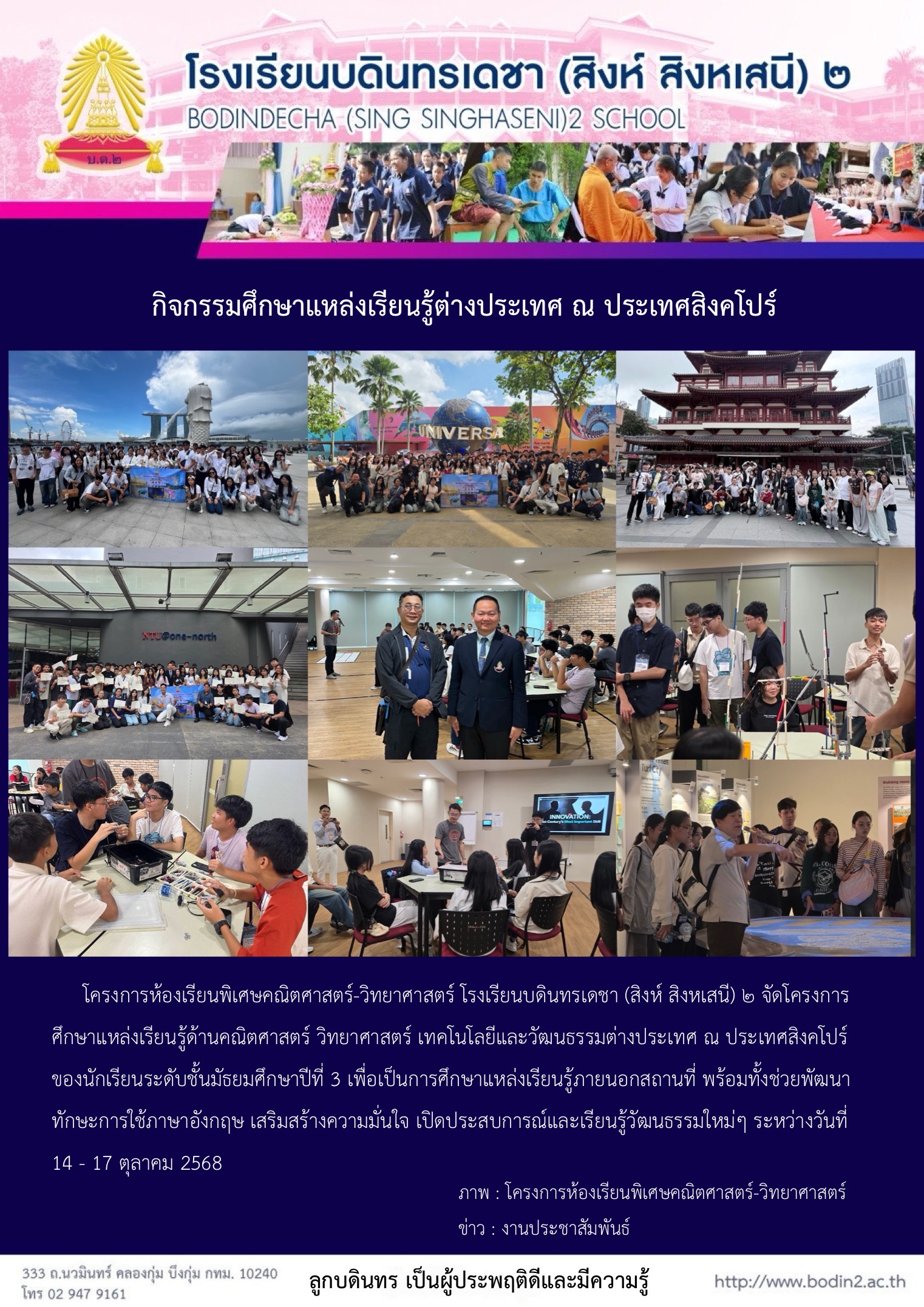 กิจกรรมศึกษาแหล่งเรียนรู้ต่างประเทศ ณ ประเทศสิงคโปร์