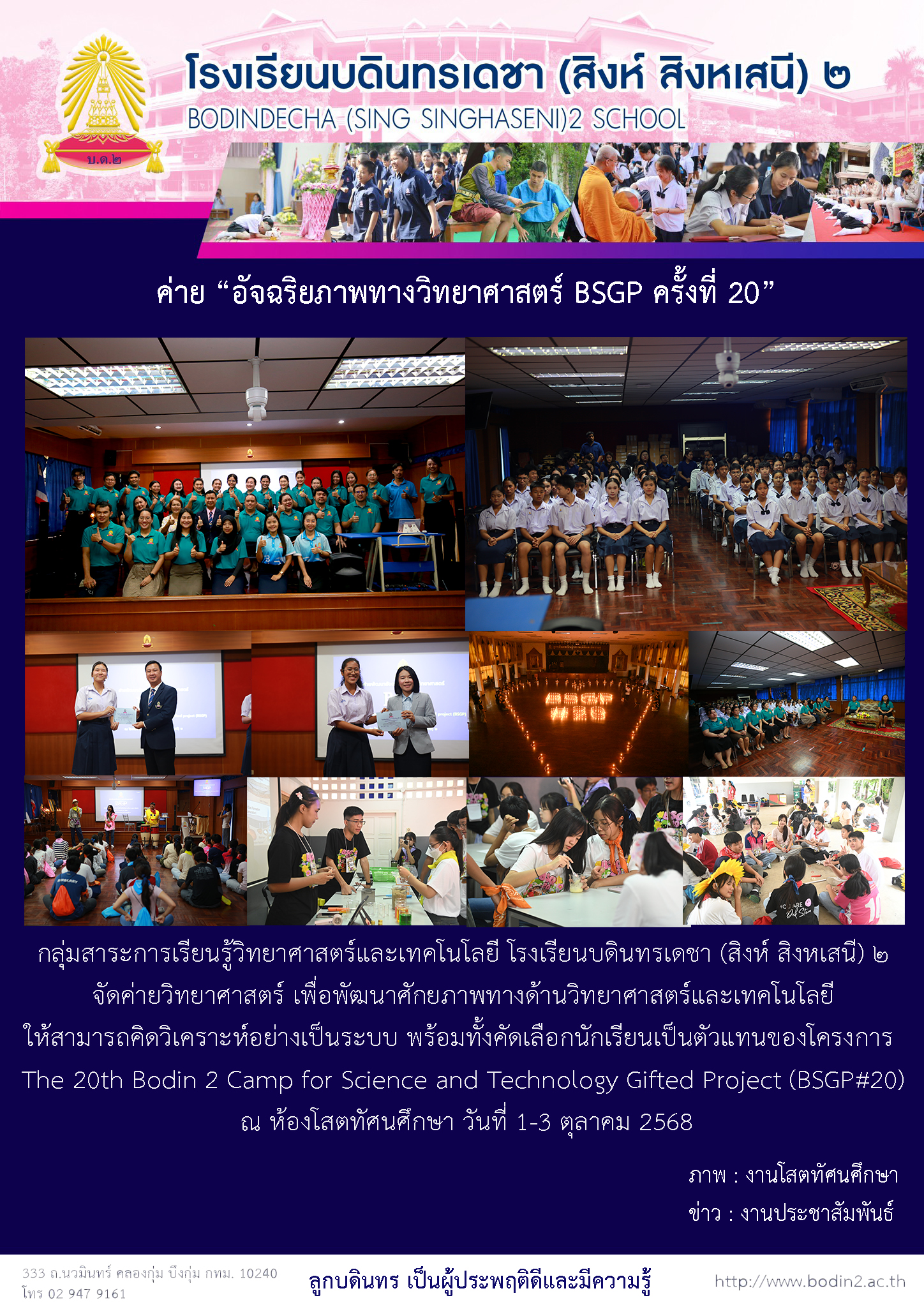 ค่าย “อัจฉริยภาพทางวิทยาศาสตร์ BSGP ครั้งที่ 20”
