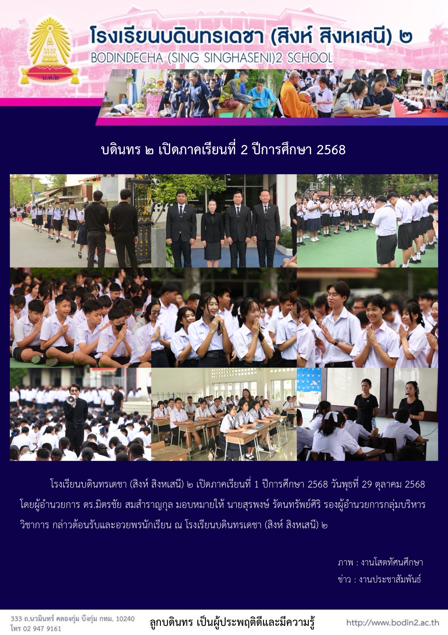 บดินทร ๒ เปิดภาคเรียนที่ 2 ปีการศึกษา 2568