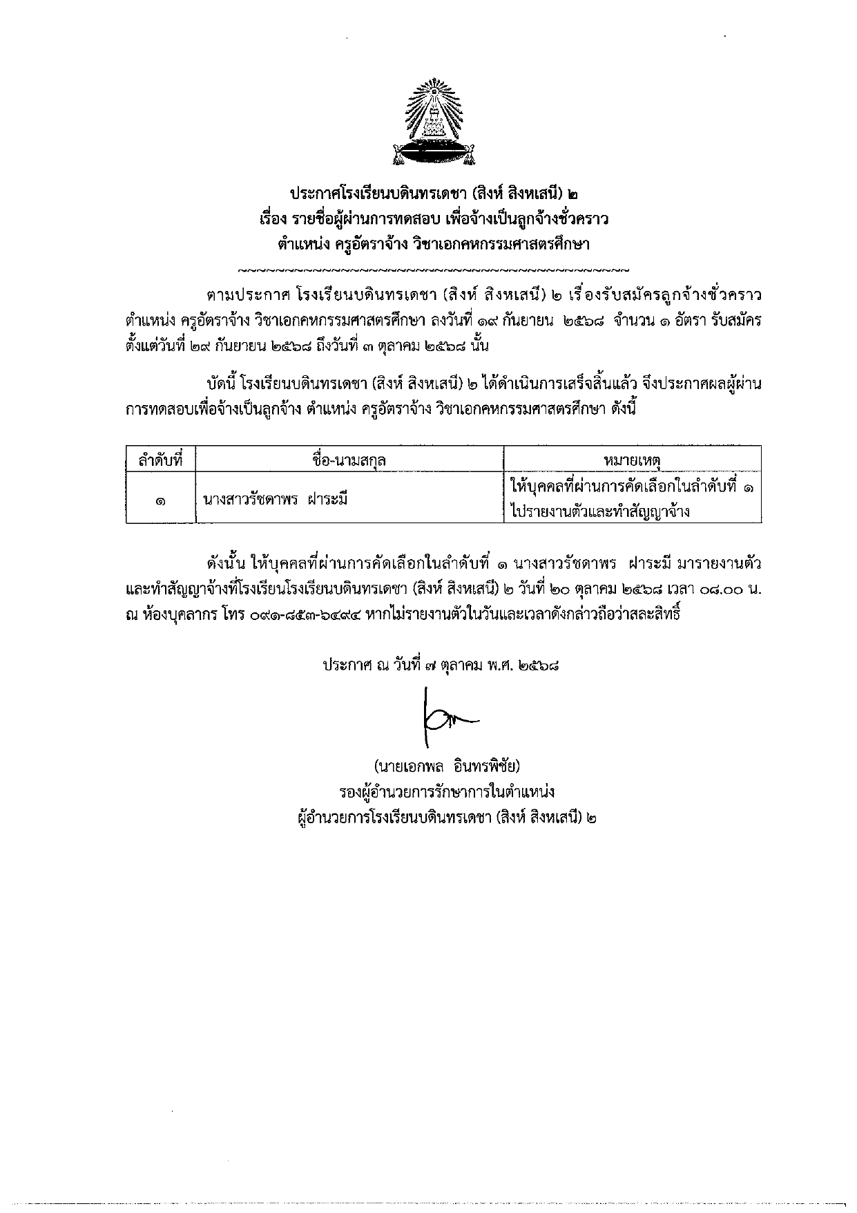 ข่าวประชาสัมพันธ์ ประกาศรายชื่อผู้ผ่านการทดสอบ เพื่อจ้างเป็นลูกจ้างชั่วคราว ตำแหน่ง ครูอัตราจ้าง วิชาเอกคหกรรมศาสตรศึกษา 7 October 2025 admin Jerry