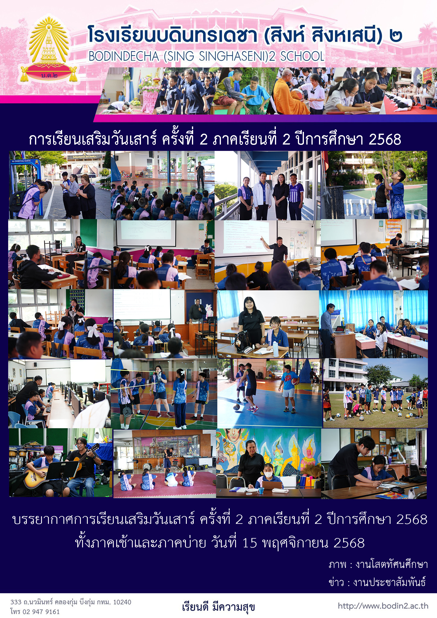 กิจกรรม/ข่าวสาร การเรียนเสริมวันเสาร์ ครั้งที่ 2 ภาคเรียนที่ 2 ปีการศึกษา 2568 17 November 2025 admin Jerry