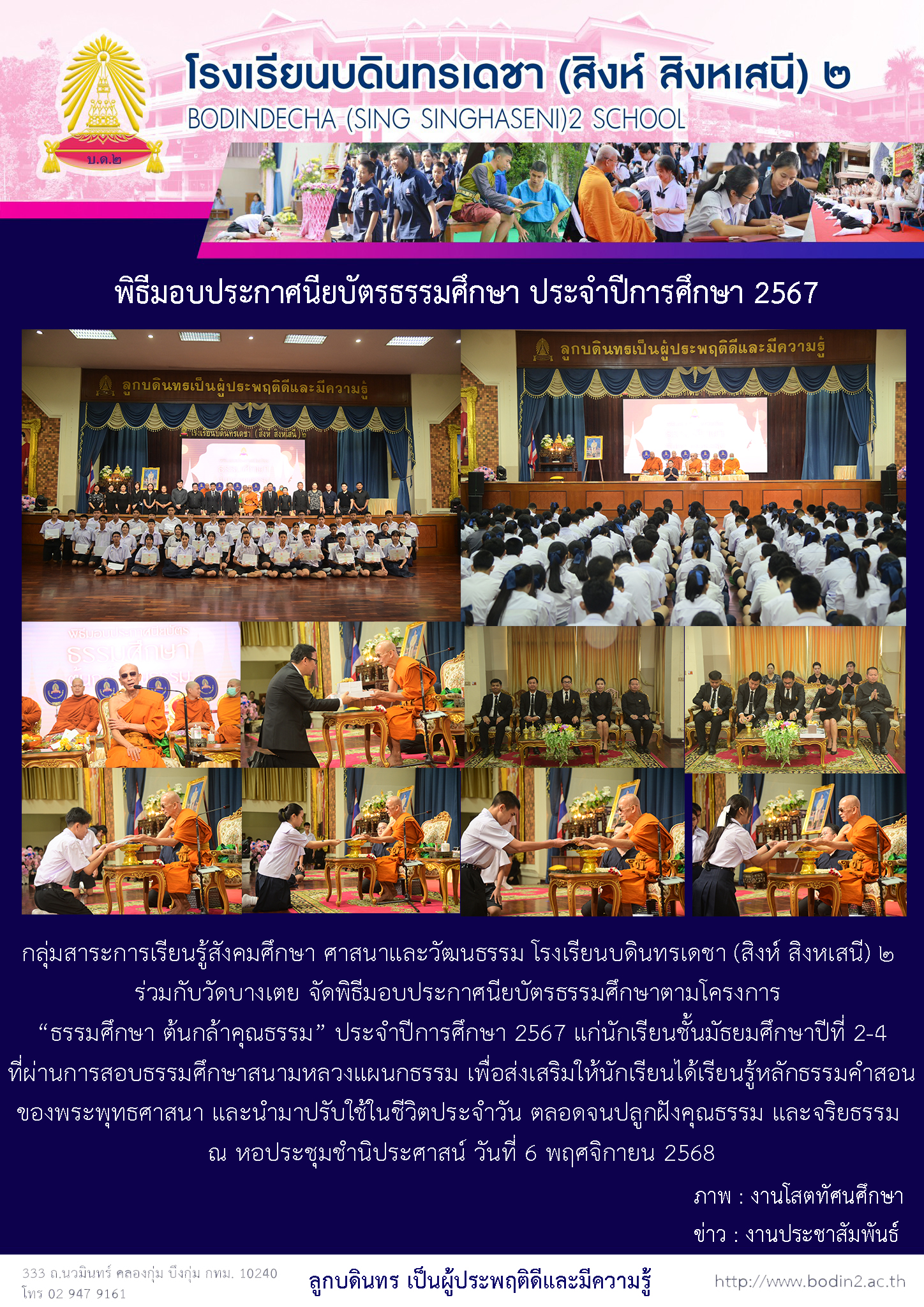 พิธีมอบประกาศนียบัตรธรรมศึกษา ประจำปีการศึกษา 2567