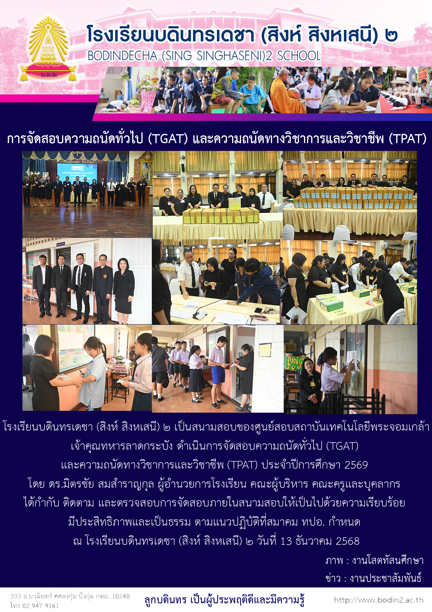 กิจกรรม/ข่าวสาร การจัดสอบความถนัดทั่วไป (TGAT) และความถนัดทางวิชาการและวิชาชีพ (TPAT) 19 December 2025 admin Jerry