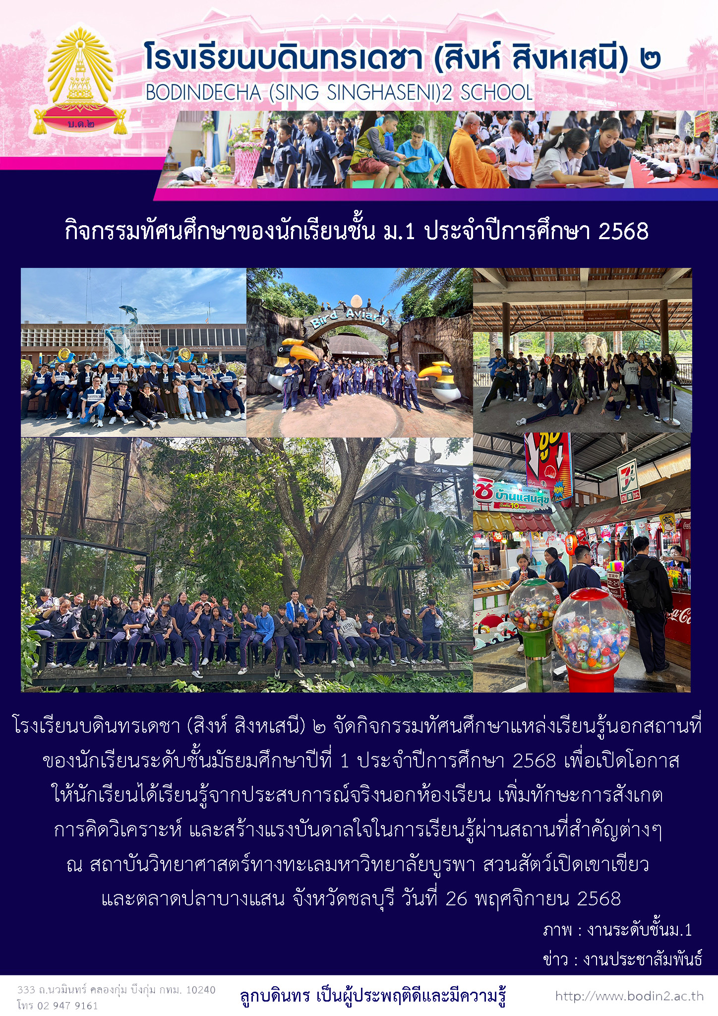 กิจกรรมทัศนศึกษาของนักเรียนชั้น ม.1 ประจำปีการศึกษา 2568