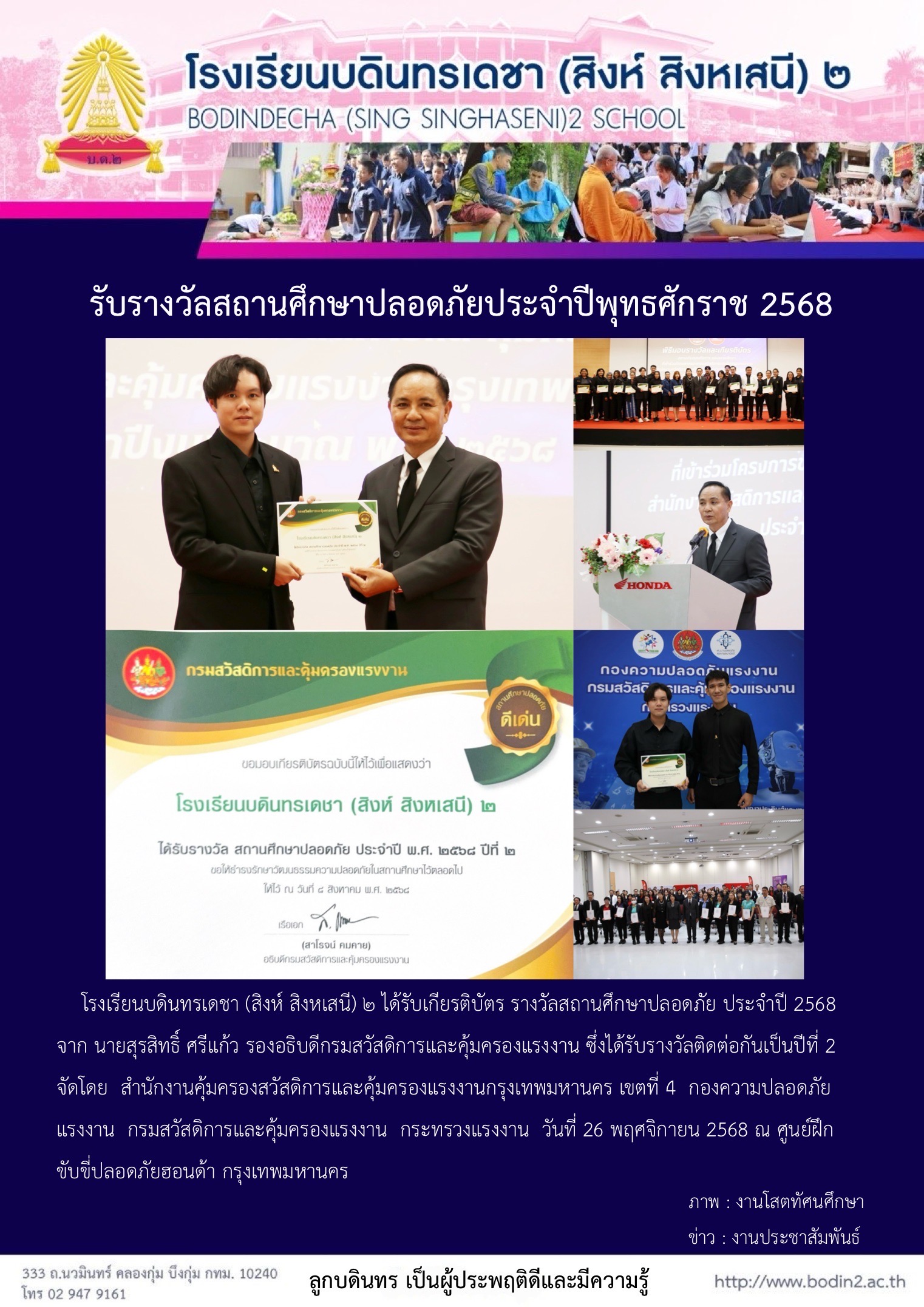 รับรางวัลสถานศึกษาปลอดภัยประจำปีพุทธศักราช 2568