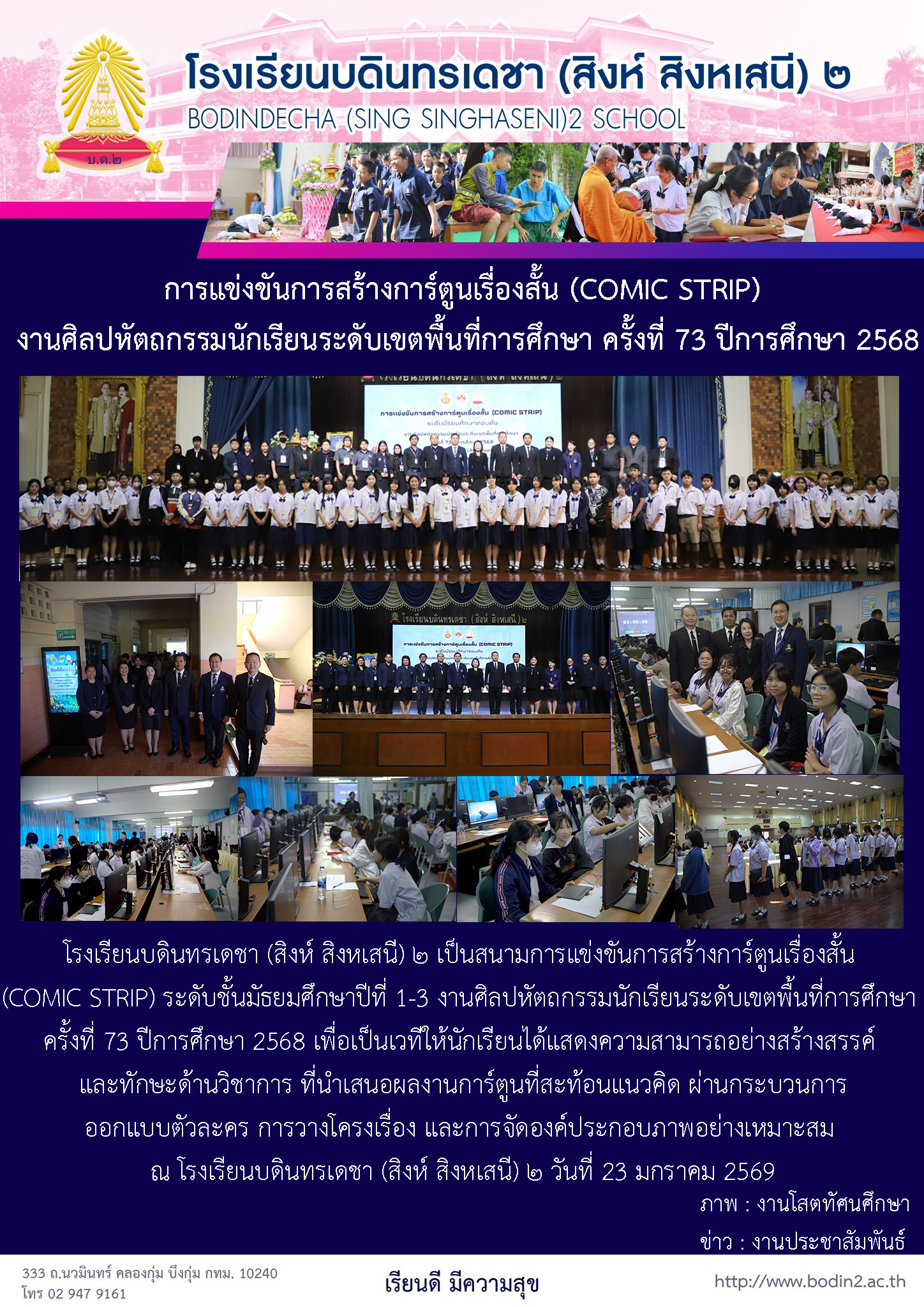 กิจกรรม/ข่าวสาร การแข่งขันการสร้างการ์ตูนเรื่องสั้น (COMIC STRIP) งานศิลปหัตถกรรมนักเรียนระดับเขตพื้นที่การศึกษา ครั้งที่ 73 ปีการศึกษา 2568 23 January 2026 admin Jerry
