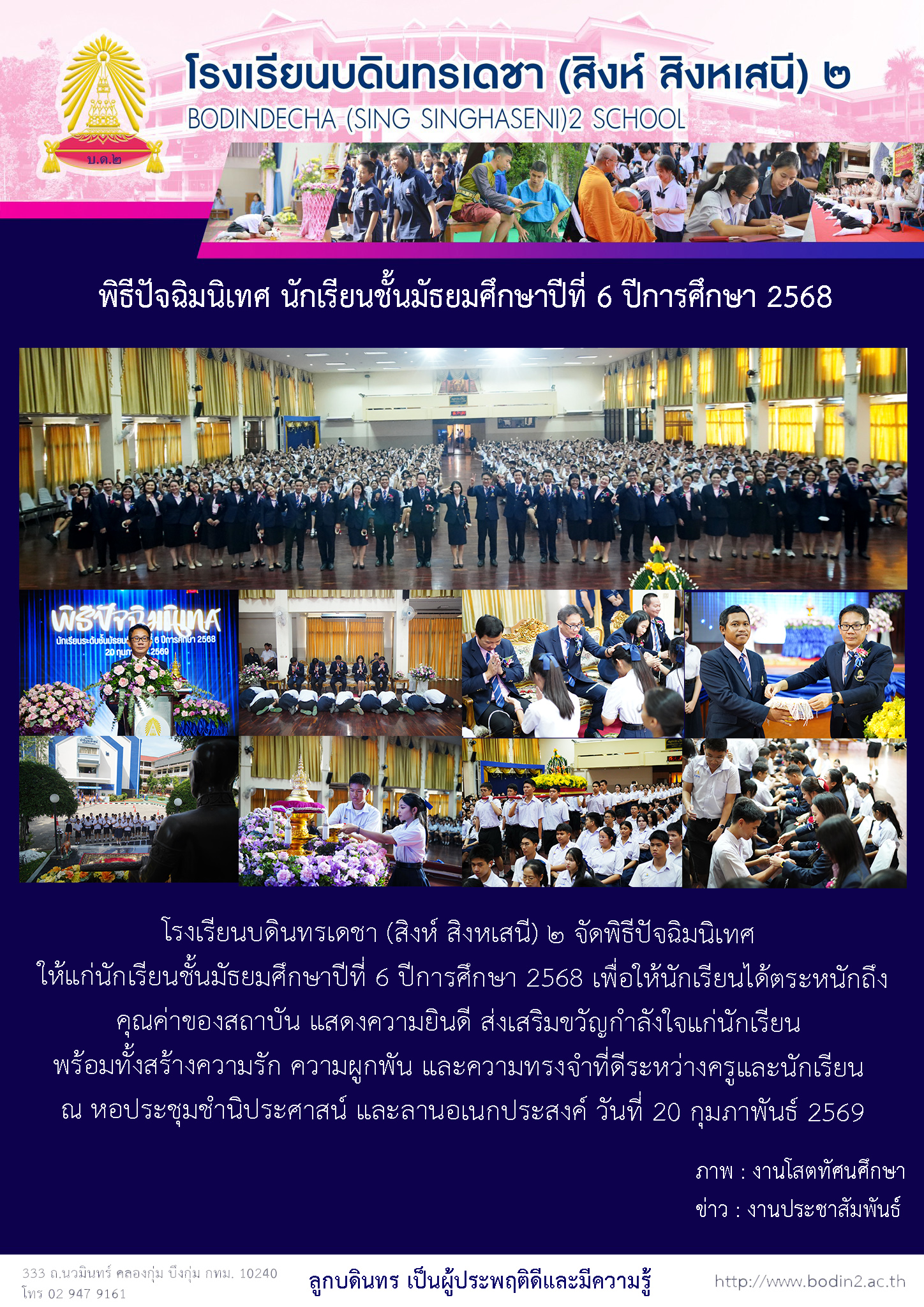 กิจกรรม/ข่าวสาร พิธีปัจฉิมนิเทศ นักเรียนชั้นมัธยมศึกษาปีที่ 6 ปีการศึกษา 2568 21 February 2026 admin Jerry