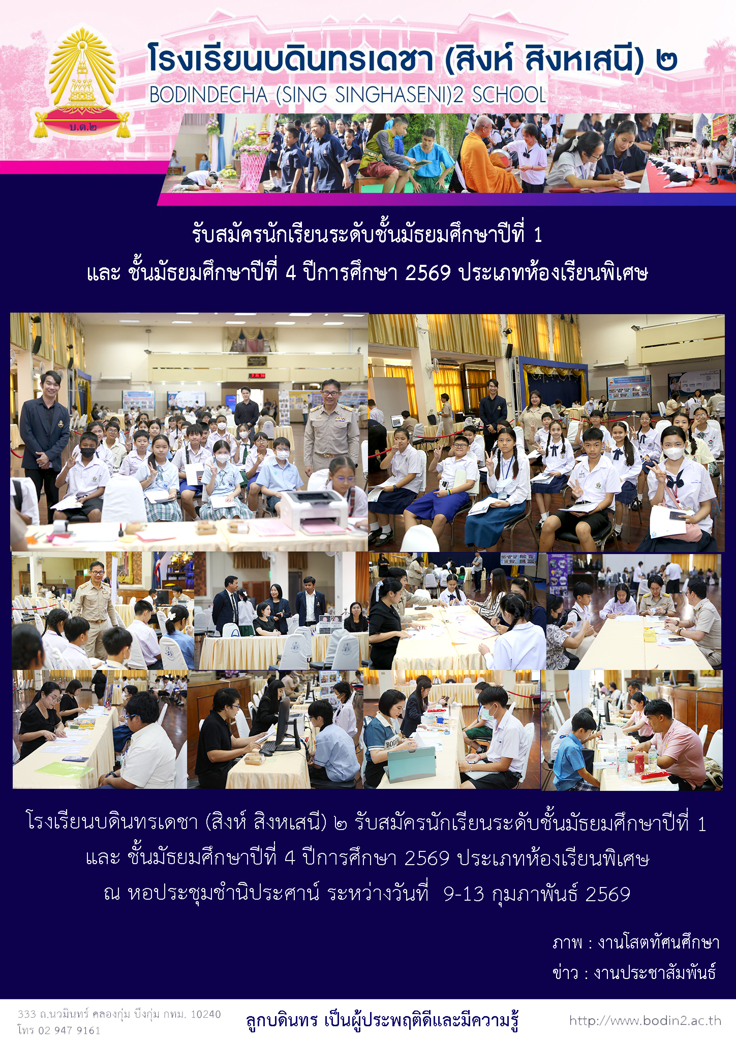 กิจกรรม/ข่าวสาร รับสมัครนักเรียนระดับชั้นมัธยมศึกษาปีที่ 1 และชั้นมัธยมศึกษาปีที่ 4 ปีการศึกษา 2569 ประเภทห้องเรียนพิเศษ 16 February 2026 admin Jerry