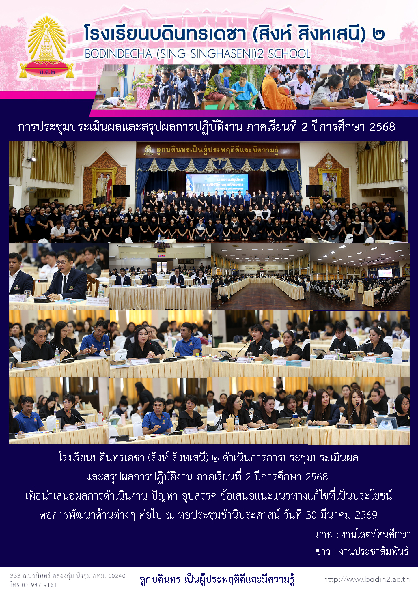 กิจกรรม/ข่าวสาร การประชุมประเมินผลและสรุปผลการปฏิบัติงาน ภาคเรียนที่ 2 ปีการศึกษา 2568 31 March 2026 admin Jerry