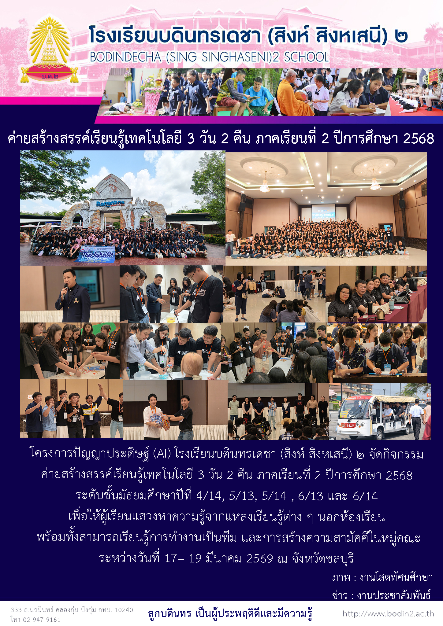 กิจกรรม/ข่าวสาร ค่ายสร้างสรรค์เรียนรู้เทคโนโลยี 3 วัน 2 คืน ภาคเรียนที่ 2 ปีการศึกษา 2568 25 March 2026 admin Jerry