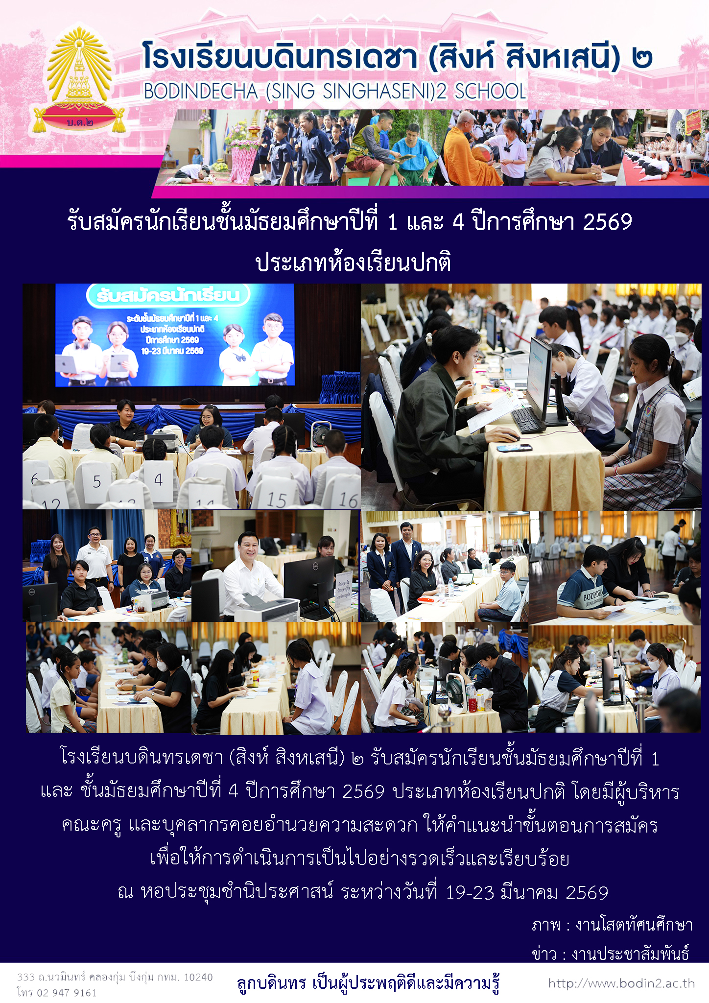 กิจกรรม/ข่าวสาร รับสมัครนักเรียนชั้นมัธยมศึกษาปีที่ 1 และ 4 ปีการศึกษา 2569 ประเภทห้องเรียนปกติ 25 March 2026 admin Jerry
