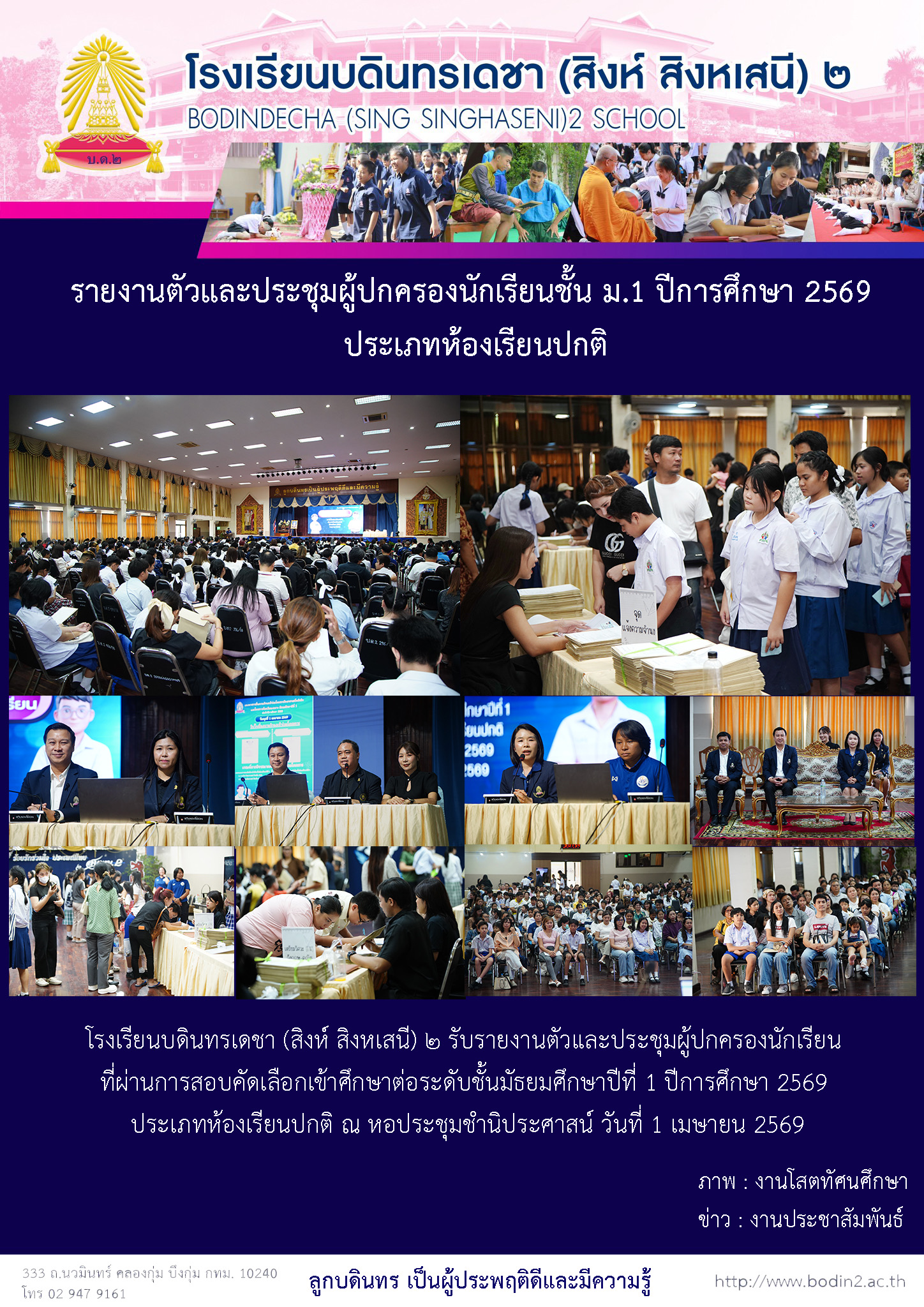 กิจกรรม/ข่าวสาร รายงานตัวและประชุมผู้ปกครองนักเรียนชั้น ม.1 ปีการศึกษา 2569 ประเภทห้องเรียนปกติ 4 April 2026 admin Jerry