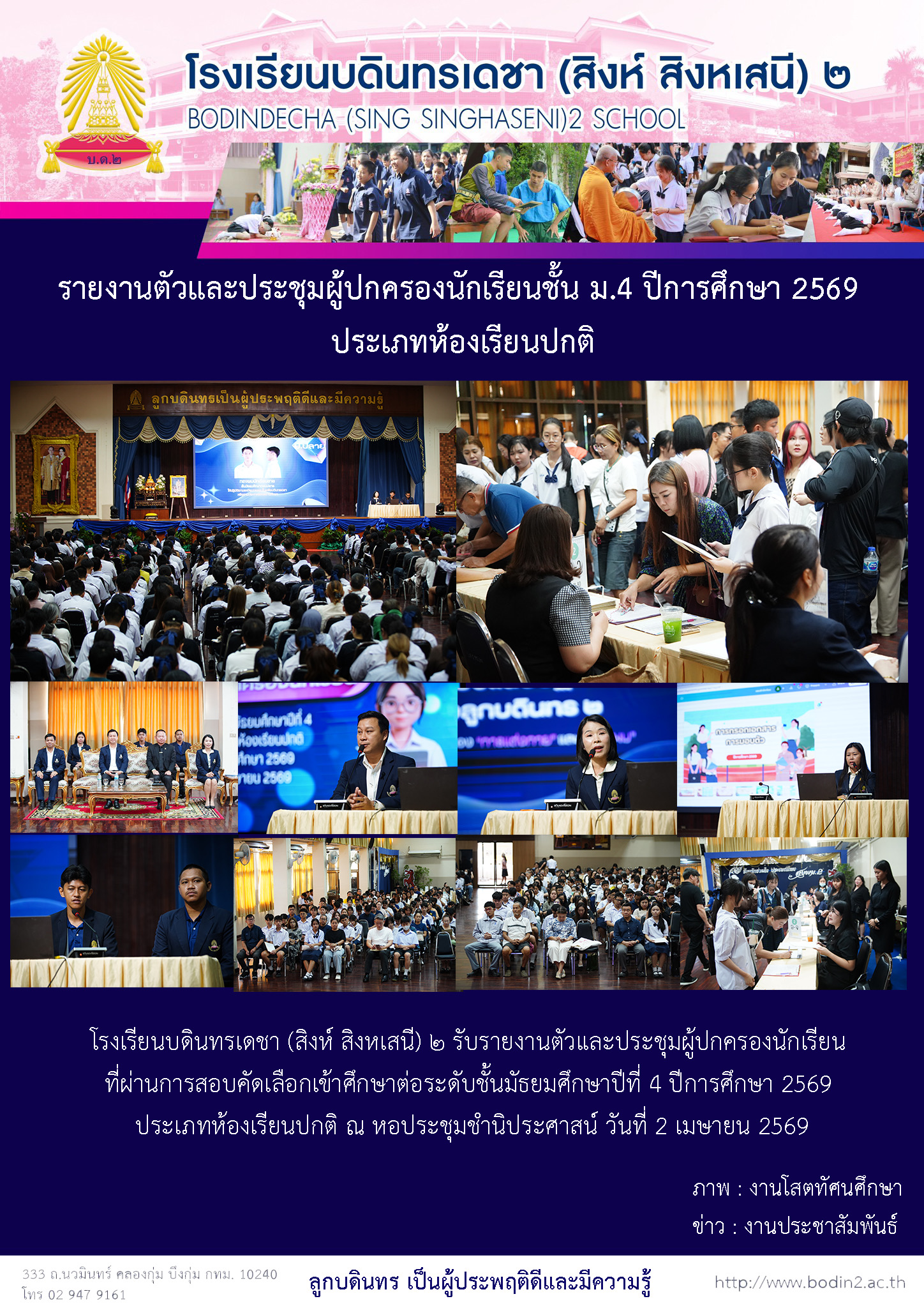กิจกรรม/ข่าวสาร รายงานตัวและประชุมผู้ปกครองนักเรียนชั้น ม.4 ปีการศึกษา 2569 ประเภทห้องเรียนปกติ 4 April 2026 admin Jerry