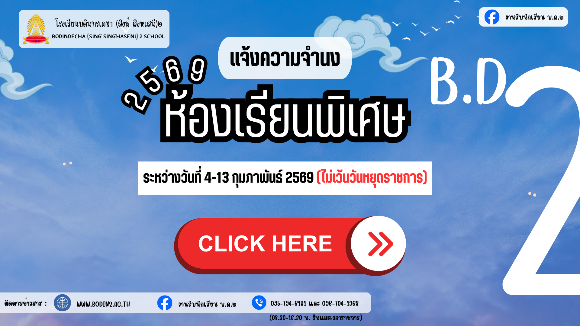 ประกาศรายชื่อนักเรียน ม.3(เดิม) เข้าศึกษาต่อระดับชั้น ม.4 ประเภทห้องเรียนพิเศษ และห้องเรียนปกติ<<คลิ๊ก