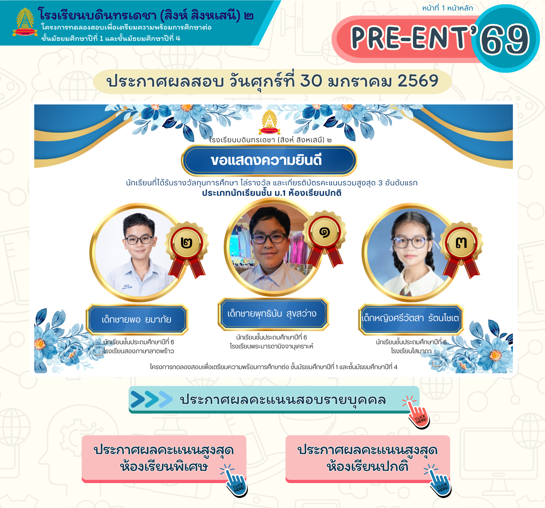ระบบ Pay-in ชำระค่าบำรุงการศึกษา ภาค 2/2568 รับชม VTR ขั้นตอนการชำระเงินได้ที่เว็บโรงเรียน <<คลิ๊ก >>เข้าสู่ระบบจ่ายเงินบำรุงการศึกษา<<คลิ๊ก